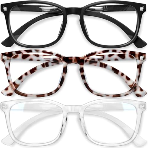 Gaoye Blåljusblockerande glasögon – 3-pack datorspelglasögon fyrkantig anti-UV-strålning, blåblockerande glasögon för kvinnor/män mode falska glasögon, matt svart + leopard + transparent