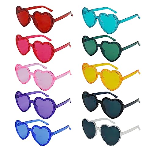 SelfTek Hjärtglasögon, 10 st ramlösa kärlek hjärtformade solglasögon färgade festglasögon multipack färgglada mode funky glasögon för kvinnor män barn