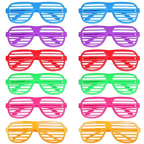 YSTrillion 12 stycken partyglasögon neonfärg slutare glasögon 80-tals mode slutare shades glasögon solglasögon för kostym fest klubb dans rekvisita karneval