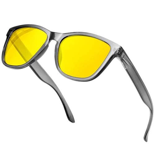 KANASTAL Natt Glasögon Kör Män och Kvinnor, Mode Lätta Fyrkantiga Glasögon Natt med UV400 Skydd, Nattglasögon för Herr och Dam, Yellow Glasses Night Driving, Transparent Grå Ram Night Vision Glasses