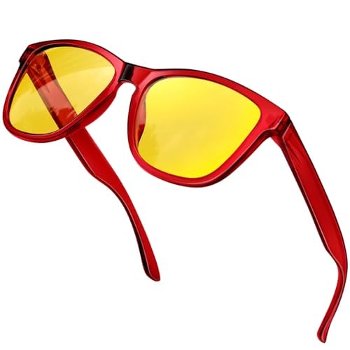 KANASTAL Natt Glasögon Kör Män och Kvinnor, Mode Lätta Fyrkantiga Glasögon Natt med UV400 Skydd, Nattglasögon för Herr och Dam, Yellow Glasses Night Driving, Transparent Röd Ram Night Vision Glasses