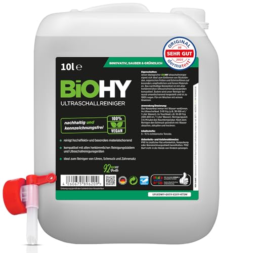 BiOHY Ultraljudsrengörare (10l burk) + knacka | Intensiv och skonsam rengöring av glasögon, tandprodukter, guld, mynt och smycken KONCENTRAT för ultraljudbad (Ultraschallreiniger)