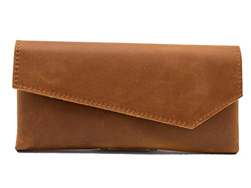 Kono Bärbart glasögonfodral PU-läder solglasögon förvaringsväska mjuka glasögonfodral för män och kvinnor, Brun, 16cm x 6.5cm x 3.5cm