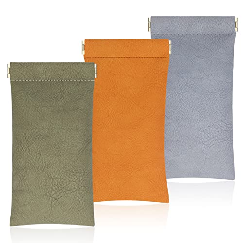 Hifot glasögonfodral 3 stycken, PU-läder mjuka solglasögon påse läsglasögon väska, konstläder klämtopp glasögonväska för män kvinnor, Stil 1, En Storlek