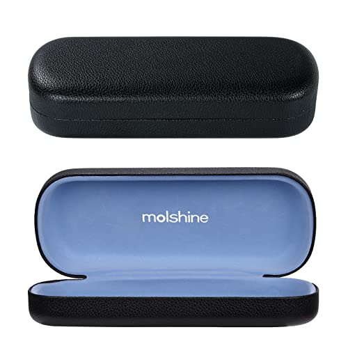 molshine hårt skal PU-läder glasögonfodral, resebärbart glasögonfodral för män kvinnor flicka resa studier arbete, Svart, M