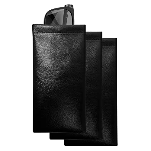 alladaga 3 stycken PU-läder mjukt glasögonfodral skyddsfodral bärbara solglasögon fodral klämtopp glasögonväska för män och kvinnor, svart, one size
