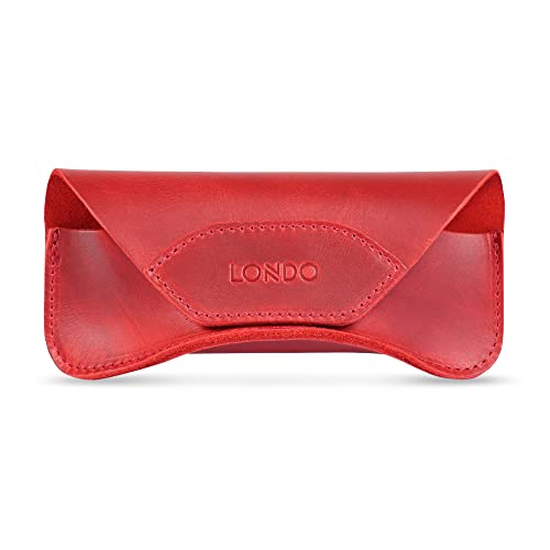 MIKA 28063104 – Stort glasögonfodral av äkta läder/sadelläder, fodral för glasögon och synhjälp, glasögonlåda för kvinnor och män, glasögonförvaring i rött, solglasögonfodral ca 16 x 8 x 3 cm, röd, ca. 16 x 3 x 8 cm, antik