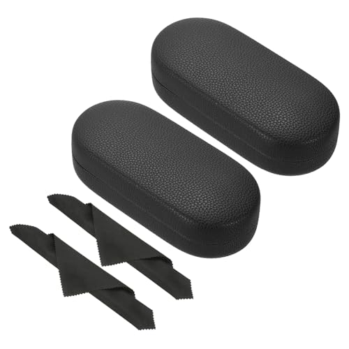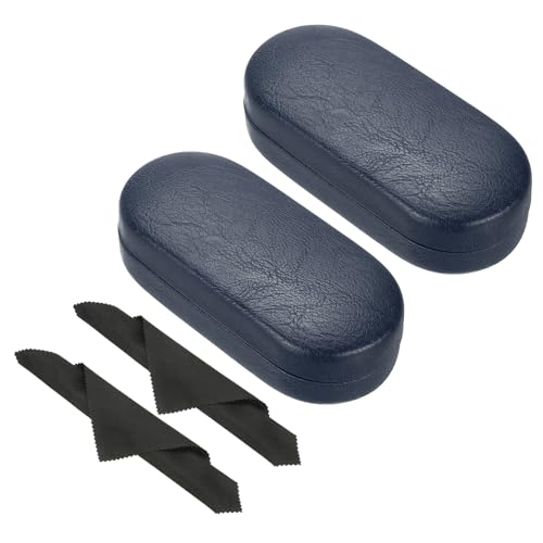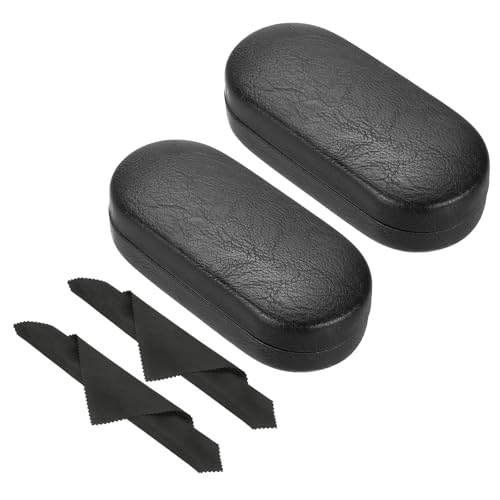 HIQU och HIST 2 stycken glasögonfodral hårt fodral, reptålig glasögonlåda PU-läder hårt skal fodral med rengöringsduk, bärbar glasögonväska för kvinnor män barn glasögon för solglasögon läsglasögon