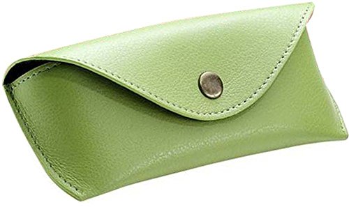 VULKIT Bärbart läder glasögonfodral för kvinnor och män, smalt solglasögonfodral, unisex glasögonfodral, Mintgrön med snodd, one size