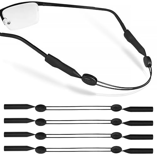 Qufiiry 4-Pack Justerbara Sportglasögonband för Män och Kvinnor - Glasögonkedja för Sport och Solglasögon, Svart, 20.5-29.5cm