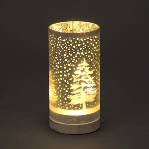 SHATCHI 20 cm juldekorerad vas bord etsat glasrör skog snöfall scen silvercylinder LED älva lampor batteridrivna