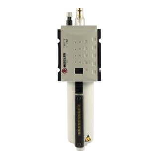RIEGLER FU 823-M-2 FUTURA filterregulator med metallbehållare, glasrör och manometer, helautomatisk, storlek 2, 0,1–2 bar, G 3/8 tum