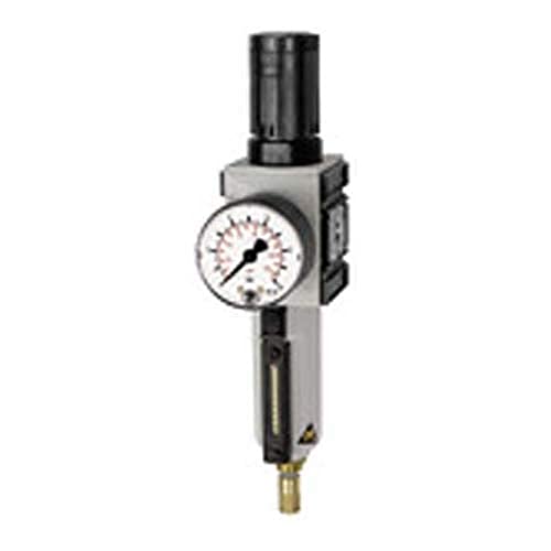 RIEGLER FU 812-M-1 FUTURA filterregulator med metallbehållare, glasrör och manometer, halvautomatisk, storlek 1, 0,1–1 bar, G 3/8 tum
