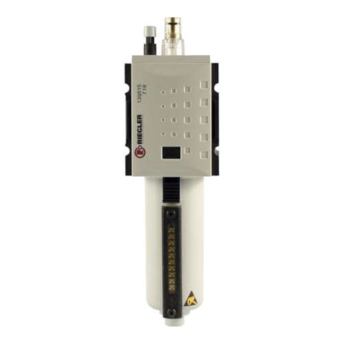 RIEGLER FU 821-M-1 FUTURA filterregulator med metallbehållare, glasrör och manometer, helautomatisk, storlek 1, 0,1–1 bar, G 1/4 tum