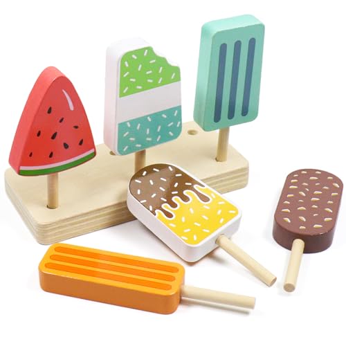 Glassbar för barn, träglassleksak, glass på pinne, träleksaker, EIS-leksaker för barn, varubutik, tillbehör, lekkök, rollspel, för barn, flicka, pojkar, 3 4 5, 6 år, Montessori-leksak
