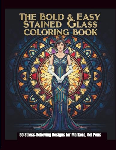 The Bold & Easy Stained Glass Coloring Book: 50 Stress-Relieving Designs for Markers, Gel Pens, and Seniors: Simple, Thick-Lined Single Sided Pages, No Bleed. for Quick Relaxation.