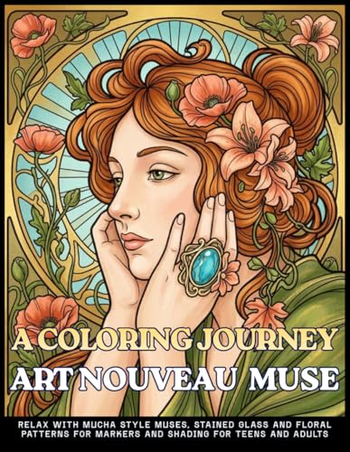 A COLORING JOURNEY ART NOUVEAU MUSE: An Aesthetic Adult Coloring Book with 60 Simple Clean Line Designs of Belle Epoque Style Muses, Stained Glass, ... for Markers and Shading for Teens and Adults