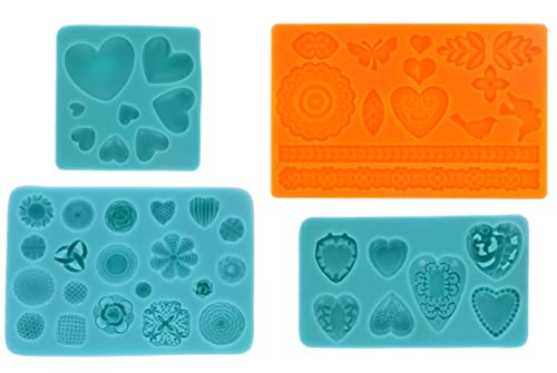 Graziano, Set med 4 silikonformar med mat- och stålhjärta tema, 4 st kakformar och choklad, tårtform för mousse, perfekt för glass, muffins, kex och gelé