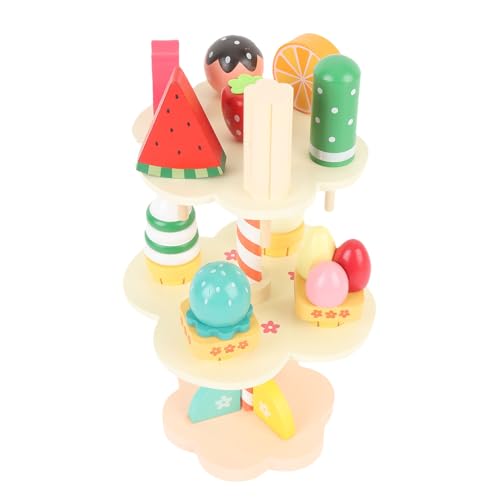 UPALDHOU Träparty Set Beechwood Dessert Stativ Speluppsättning med Glass Torn & Mat för Barn åldrar 3 4 5 6 Fantasifullt Lek Kök Leksak