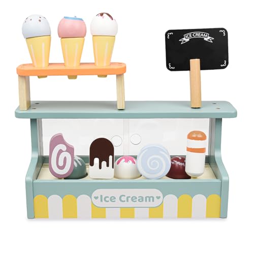 Hyacinthy EIS leksak för barn, trä glass set pretend play livsmedel leksak för småbarn, isbar butik, kök mat rollspel leksak för 3+ år gamla pojkar flickor