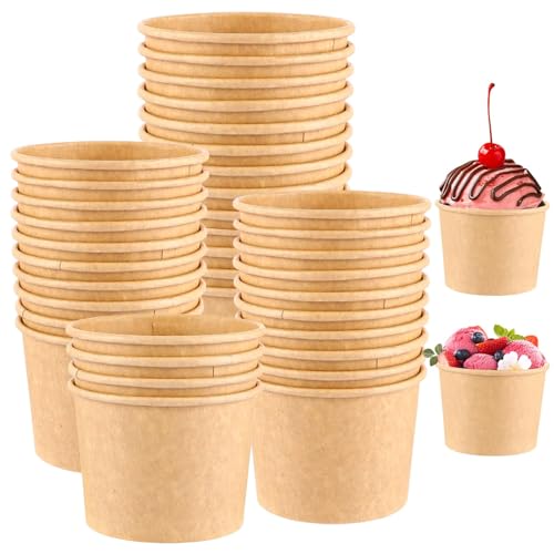 YAYODS 50 stycken glassbägare kartong – 8 oz universell kartong – brun rund matkopp kakbägare för glass, desserter, förrätter, yoghurt, soppor, gröt