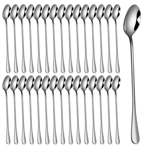 Latte macchiato Skedset, 30 delar kaffeskedar långa glasskedar tesked, 19,5 cm lång omrörningssked av rostfritt stål perfekt för iskaffe iste glassbägare mjölkshake desserter