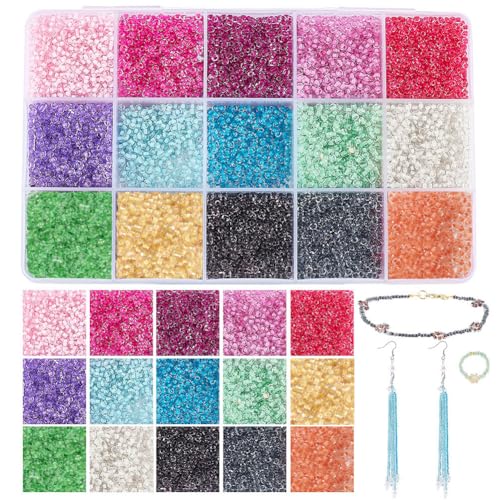 PandaHall 1 2 000 st glasstenar 2 mm 15 färger ponny pärlor 12/0 små fröpärlor genomskinliga silverfodrade rocailles mini mellanlägg pärlor för smycken, hål 0,8 mm