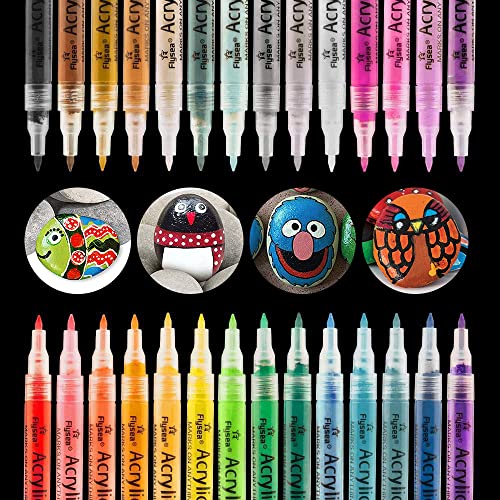 SUPERSUN Akrylfärgpennor för stenmålning: 28 färger, 0,7 mm, fin spets, permanent vattenbaserad markörpenna för trä, keramiskt porslin, glasstenar, stenar, tyg, duk, gör-det-själv-muggdesign