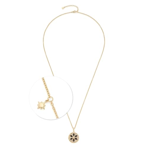 JEWELS BY LEONARDO halskedja Biella, lång kedja av guldfärgat rostfritt stål, stjärnmotiv med svarta och klara glasstenar, 70–75 cm längd, smycke present, 024365, 70 cm, Rostfritt stål, Ingen ädelsten