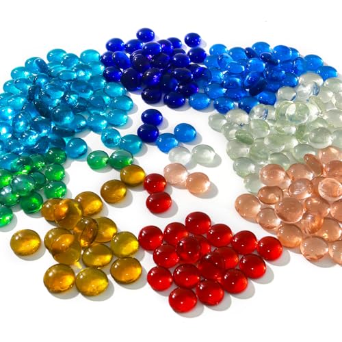 ARSUK genomskinliga glasstenar 180 st ca. 0,955 kg - Runda platta glasstenar för dekoration i akvarier, vaser, växtkrukor och trädgårdar - akvarium grus, stenar, klimpar och ädelstenar