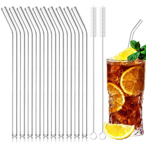10 Stycken 200 mm Återanvändbara Glassugrör, LFGB-Certifierade Transparent Böjda Med 2 Rengöringsborstar, BPA-Fria för Cocktails Smoothie Och Juicer