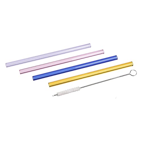 Winbest 5 stycken Bubble Tea sugrör rengöringsborste extra tjocka glassugrör, Boba sugrör glas återanvändbara för bubbelte, smoothie, cocktails och juicer - 14 mm × 21,5 cm