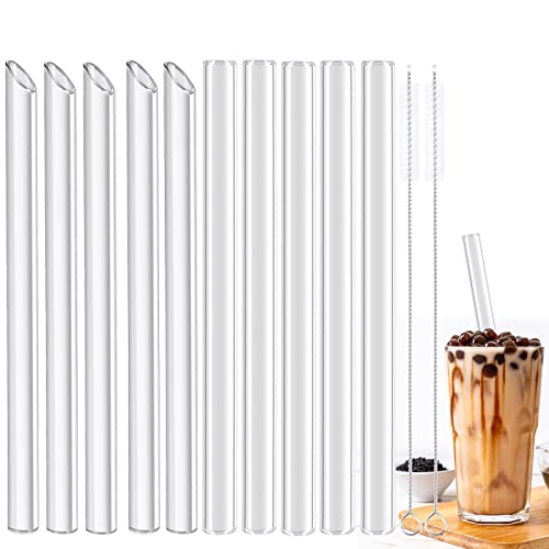 JOYZYAIYY Glassugrör återanvändbara 13 stycken - 5 böjda sugrör glas och 5 raka glassugrör 15 cm med 3 rengöringsborstar, lämpliga för bubbelte, cocktail, juice, slush