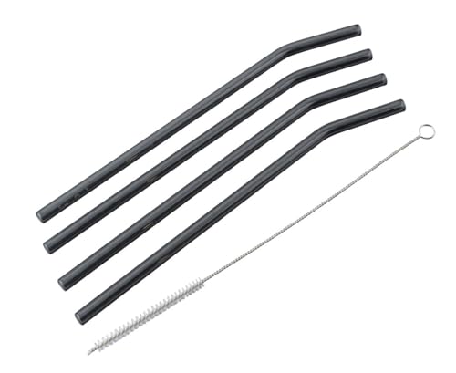 Fackelmann Glassugrör, 4-delat set med rengöringsborste, högkvalitativt rostfritt stål, ljusgrå – återanvändbara och diskmaskinssäkra