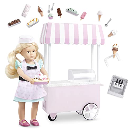 Lori – minidockor och glasvagn – kläder och glass tillbehör för 15 cm dockor – glasskopor, koner, mjuk servering, glassar – leksaker för barn – 3 år + – Evelinas glassvagn