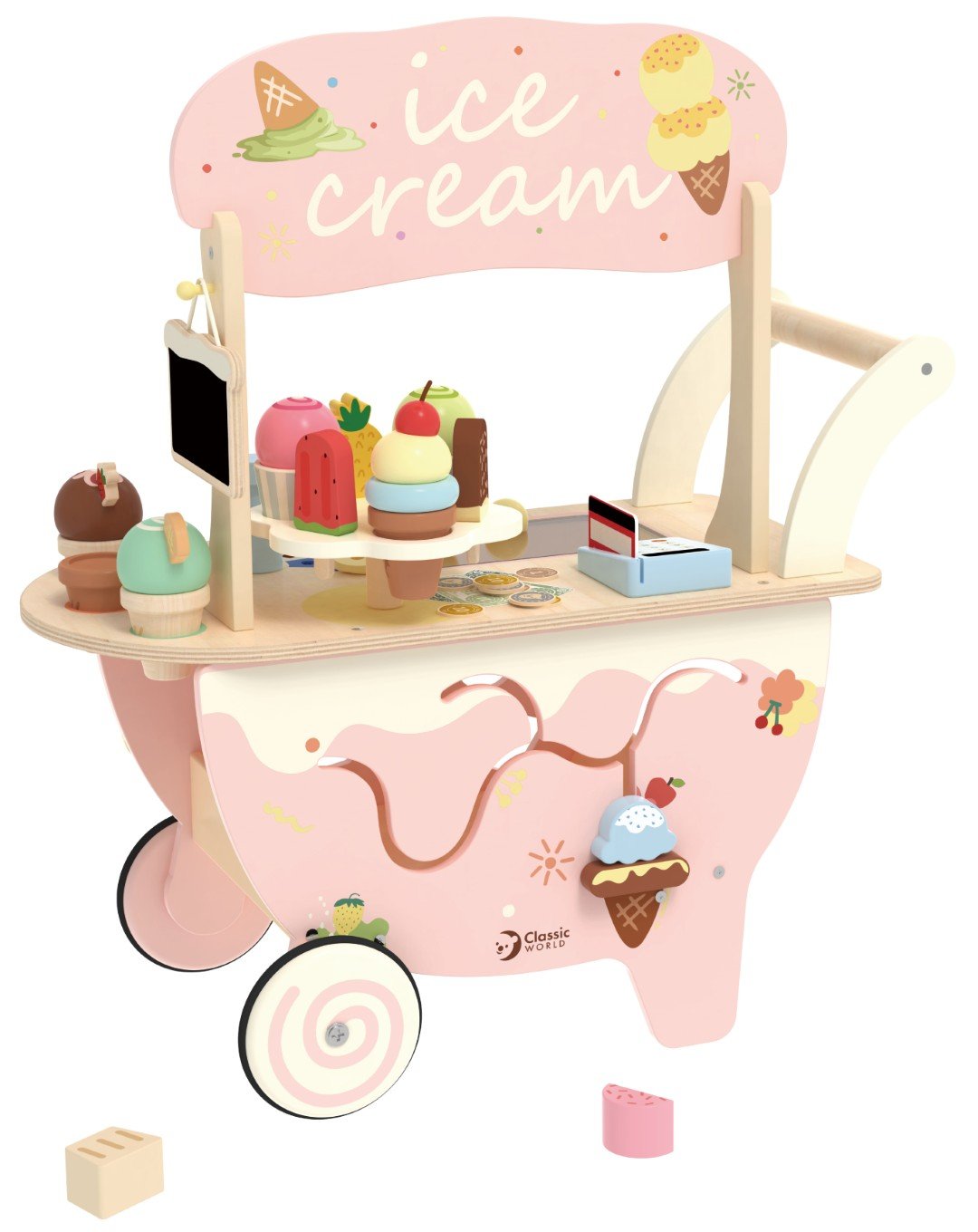 Glassvagn för barn med glass leksaksbutik trä med glassmaskin rosa