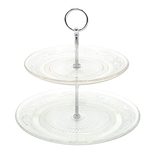 Dekohelden24 Hyllor av glas, två våningar, silvervåningsstång, glastallrik med mönster, storlek: H/Ø ca 25 x 25 cm