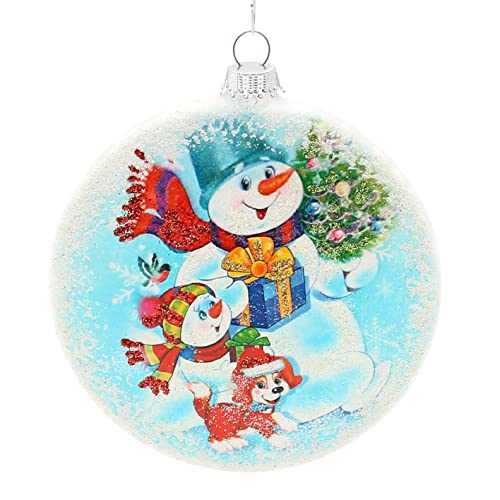 Dekohelden24 Lauschaer Julgransdekoration-glastallrik tryckt med liten snögubbe, med glitterdekor och silverkrona, storlek B/Ø: ca 1 x 9 cm, 9 cm