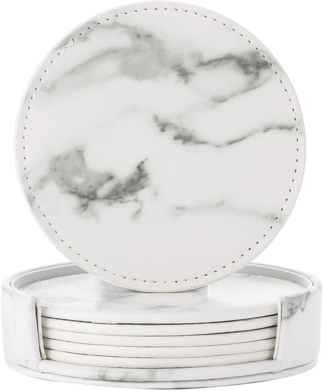 Glasunderlägg 6-pack PU-läder Marmor Vit