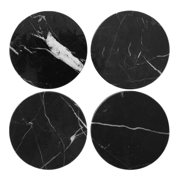 Stiernholm Marmor glasunderlägg rund 10 cm 4-pack svart