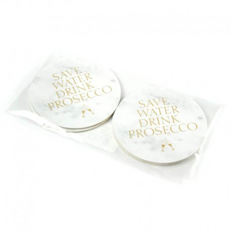 Glasunderlägg 4-pack "prosecco" marmor med gulfärgad text