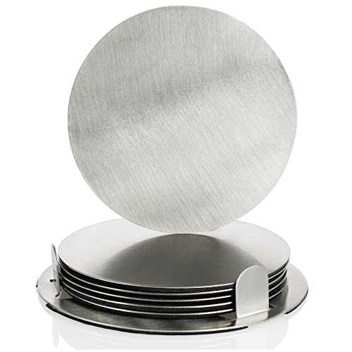 COM-FOUR® 7-delad glasunderläggset med hållare - glasunderlägg i rostfritt stål för drinkar - runda stålunderlägg - silverfärgade (007-bit - silverfärgad)