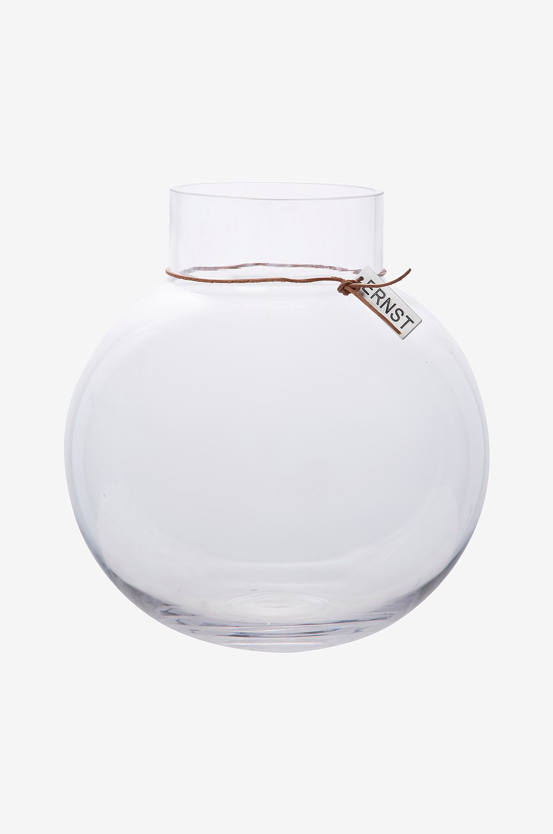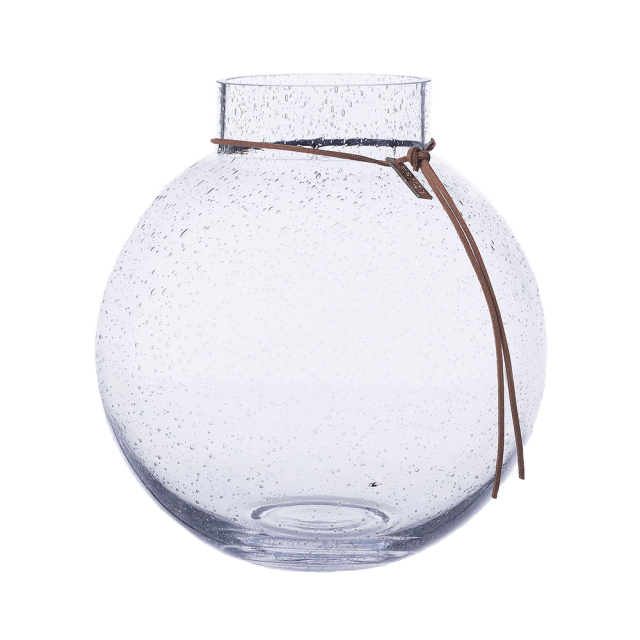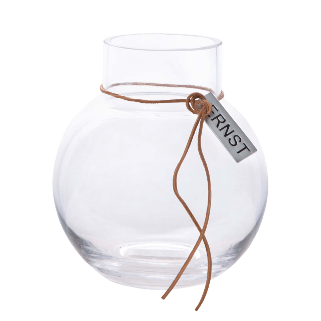 Ernst glasvas rund med läderband Ø30 cm