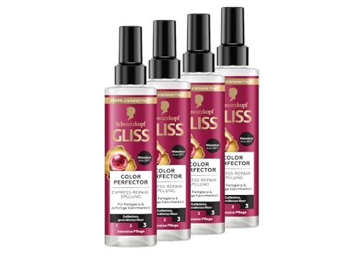 Gliss Express Repair Balsam Colour Perfector (4 x 200 ml), hårbalsam för tonat, slingat eller färgat hår, värmeskydd upp till 230 °C