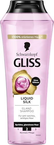 Gliss Shampoo Flytande Silk (250 ml), hårschampo för en naturlig glans, vårdschampo jämnar ut hårytan för exceptionellt mjukt hår