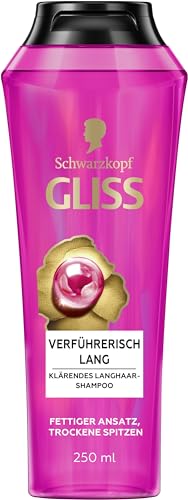 Gliss Shampoo förföriskt långt (250 ml), hårschampo med biotinkomplex och pion, vårdschampo ger näring åt torra spetsar och tar bort oljig behandling