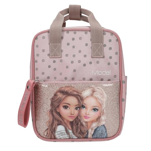 Depesche 14011 TOPModel ryggsäck prickar – ryggsäck i rosa, med modellmotiv, prickmönster och glitter, väska med justerbara remmar
