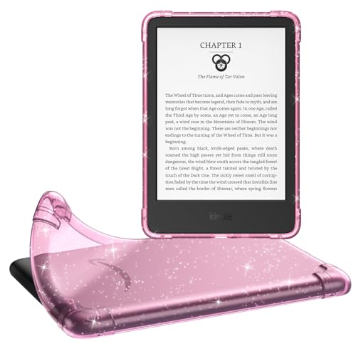 MoKo Case for 6" ALL-New Kindle (11th Generation-2024/2022 Release), Ultra Clear Soft Flexible Transparent TPU Skin Bumper Back Cover Shell, Glitter Flowers Pink