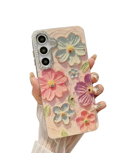 Doowear skyddsfodral för Samsung Galaxy A35 5G för kvinnor och flickor, söt retro oljemålning, blomma, glitter, glänsande, glittrande, kameralins skydd, stötsäkert, mobiltelefonfodral för Samsung