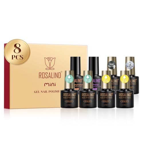 Rosealind Baslack Top Coat UV nagellacksset, 8 stycken naglar primer och uttorkare för gelnaglar, blötläggning UV/LED-matta och glitter topprock nagelkonst manikyrset